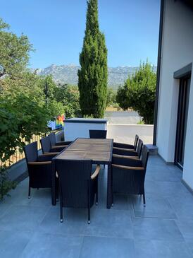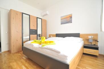 Appartamento può accogliere 6 ospiti. I letti sono disposti nelle camere da letto che sono 3, su 64m2. Gli ospiti hanno a disposizione il proprio terrazzo per godere nelle calde serate estive. Si può preparare il cibo utilizzando il barbecue comune.