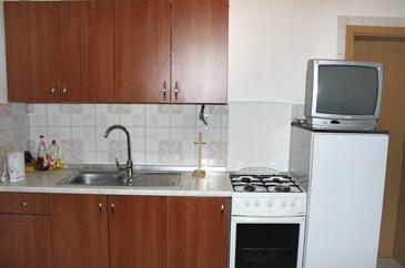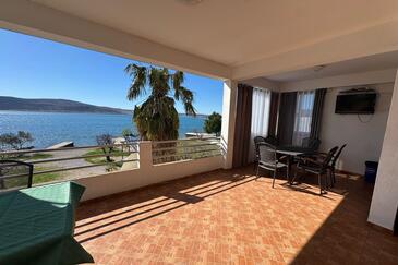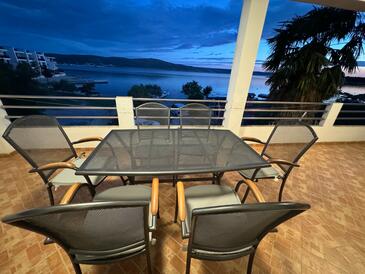 Appartamento può accogliere 10 ospiti. I letti sono disposti nelle camere da letto che sono 3, su 93m2. Gli ospiti hanno a disposizione il proprio terrazzo per godere nelle calde serate estive. Dall'appartamento si gode di una vista sul mare. Si può preparare il cibo utilizzando il barbecue comune.