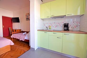 Appartamento può accogliere 2 ospiti. I letti sono disposti nelle camere da letto che sono 1, su 25m2. Gli ospiti hanno a disposizione il proprio terrazzo per godere nelle calde serate estive. Si può preparare il cibo utilizzando il barbecue comune.