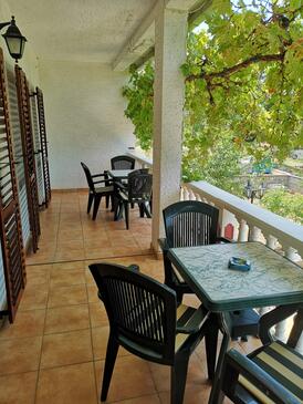 Appartamento può accogliere 6 ospiti. I letti sono disposti nelle camere da letto che sono 3, su 69m2. Gli ospiti hanno a disposizione il proprio terrazzo per godere nelle calde serate estive. Dall'appartamento si gode di una vista sul mare. Si può preparare il cibo utilizzando il barbecue comune.