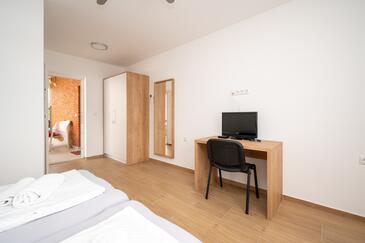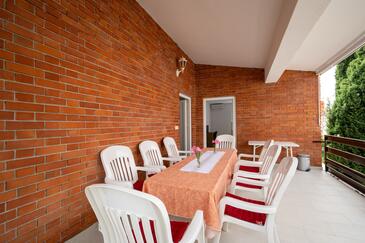 Appartamento può accogliere 5 ospiti. I letti sono disposti nelle camere da letto che sono 2, e nella camera di soggiorno, su 65m2. Gli ospiti hanno a disposizione il proprio terrazzo per godere nelle calde serate estive. Si può preparare il cibo utilizzando il barbecue comune.