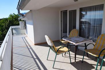 Appartamento può accogliere 6 ospiti. I letti sono disposti nelle camere da letto che sono 3, su 77m2. Gli ospiti hanno a disposizione il proprio terrazzo per godere nelle calde serate estive. Dall'appartamento si gode di una vista sul mare. Si può preparare il cibo utilizzando il barbecue comune.