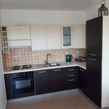 Appartamento può accogliere 5 ospiti. I letti sono disposti nelle camere da letto che sono 2, e nella camera di soggiorno, su 52m2. Gli ospiti hanno a disposizione il proprio terrazzo per godere nelle calde serate estive. Dall'appartamento si gode di una vista sul mare. Si può preparare il cibo utilizzando il barbecue comune.