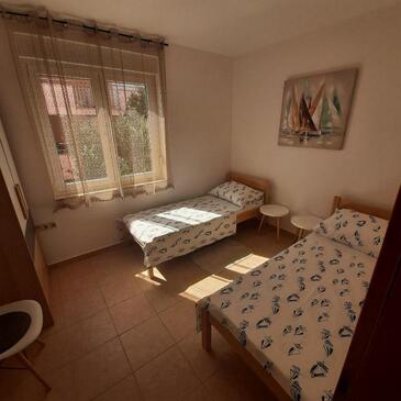 Appartamento può accogliere 5 ospiti. I letti sono disposti nelle camere da letto che sono 2, e nella camera di soggiorno, su 52m2. Gli ospiti hanno a disposizione il proprio terrazzo per godere nelle calde serate estive. Dall'appartamento si gode di una vista sul mare. Si può preparare il cibo utilizzando il barbecue comune.