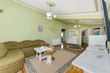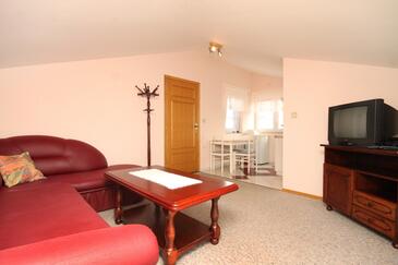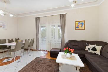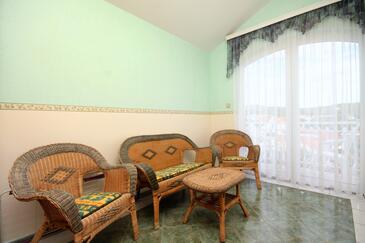Appartamento può accogliere 5 ospiti. I letti sono disposti nelle camere da letto che sono 2, e nella camera di soggiorno, su 42m2. Gli ospiti hanno a disposizione il proprio terrazzo per godere nelle calde serate estive. Dall'appartamento si gode di una vista sul mare. Si può preparare il cibo utilizzando il barbecue comune. Durante il soggiorno gli ospiti possono utilizzare la piscina comune.