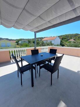 Appartamento può accogliere 6 ospiti. I letti sono disposti nelle camere da letto che sono 2, su 38m2. Gli ospiti hanno a disposizione il proprio terrazzo per godere nelle calde serate estive. Dall'appartamento si gode di una vista sul mare. Si può preparare il cibo utilizzando il barbecue comune.