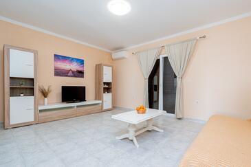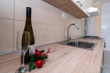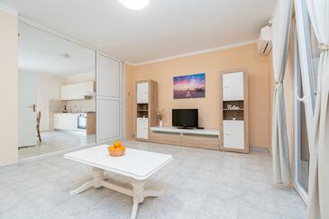 Appartamento può accogliere 6 ospiti. I letti sono disposti nelle camere da letto che sono 2, e nella camera di soggiorno, su 73m2. Gli ospiti hanno a disposizione il proprio terrazzo per godere nelle calde serate estive. Dall'appartamento si gode di una vista sul mare. Si può preparare il cibo utilizzando il barbecue comune. Altri clienti o proprietari passano per balcone dell'unità d'alloggio prenotata.