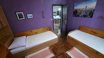 Appartamento può accogliere 4 ospiti. I letti sono disposti nelle camere da letto che sono 2, su 80m2. Gli ospiti hanno a disposizione il proprio terrazzo per godere nelle calde serate estive. Si può preparare il cibo utilizzando il barbecue comune.