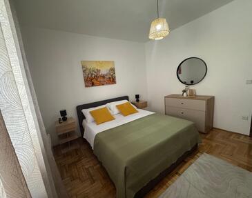 Appartamento può accogliere 4 ospiti. I letti sono disposti nelle camere da letto che sono 2, su 80m2. Gli ospiti hanno a disposizione il proprio terrazzo per godere nelle calde serate estive. Si può preparare il cibo utilizzando il barbecue comune.