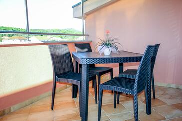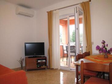 Appartamento può accogliere 6 ospiti. I letti sono disposti nelle camere da letto che sono 2, e nella camera di soggiorno, su 50m2. Gli ospiti hanno a disposizione il proprio terrazzo per godere nelle calde serate estive. Dall'appartamento si gode di una vista sul mare. Si può preparare il cibo utilizzando il barbecue comune. Durante il soggiorno gli ospiti possono utilizzare la piscina comune.