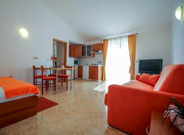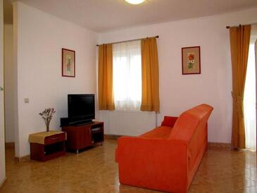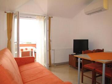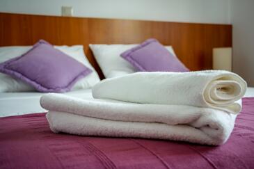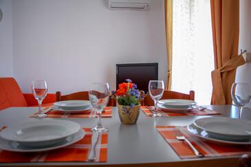 Appartamento può accogliere 6 ospiti. I letti sono disposti nelle camere da letto che sono 2, e nella camera di soggiorno, su 50m2. Gli ospiti hanno a disposizione il proprio terrazzo per godere nelle calde serate estive. Dall'appartamento si gode di una vista sul mare. Si può preparare il cibo utilizzando il barbecue comune. Durante il soggiorno gli ospiti possono utilizzare la piscina comune.