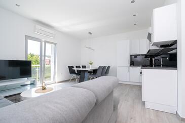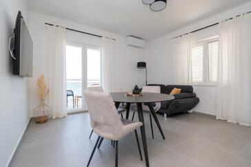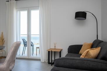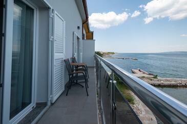 Appartamento può accogliere 4 ospiti. I letti sono disposti nelle camere da letto che sono 2, su 63m2. Gli ospiti hanno a disposizione il proprio balcone per godere delle calde serate estive. Dall'appartamento si gode di una vista sul mare. Si può preparare il cibo utilizzando il barbecue comune.