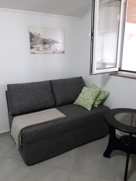 Appartamento può accogliere 4 ospiti. I letti sono disposti nelle camere da letto che sono 2, su 43m2. Gli ospiti hanno a disposizione il proprio terrazzo per godere nelle calde serate estive. Dall'appartamento si gode di una vista sul mare. Si può preparare il cibo utilizzando il barbecue comune.