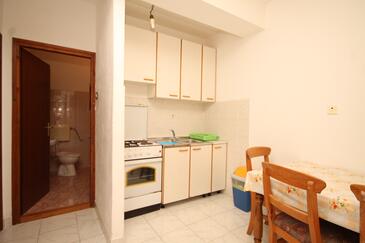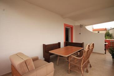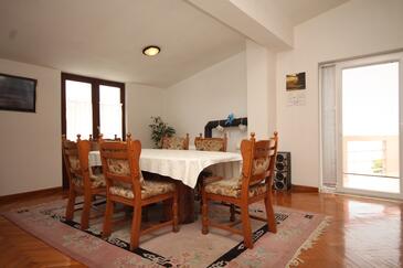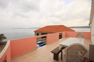 Appartamento può accogliere 6 ospiti. I letti sono disposti nelle camere da letto che sono 2, e nella camera di soggiorno, su 77m2. Gli ospiti hanno a disposizione il proprio terrazzo per godere nelle calde serate estive. Dall'appartamento si gode di una vista sul mare. Si può preparare il cibo utilizzando il barbecue comune.