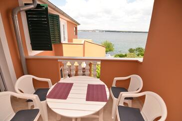 Appartamento può accogliere 5 ospiti. I letti sono disposti nelle camere da letto che sono 2, su 55m2. Gli ospiti hanno a disposizione il proprio terrazzo per godere nelle calde serate estive. Dall'appartamento si gode di una vista sul mare.