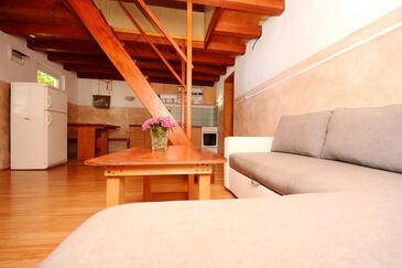 Appartamento può accogliere 5 ospiti. I letti sono disposti nelle camere da letto che sono 2, e nella camera di soggiorno, su 53m2. Gli ospiti hanno a disposizione il proprio terrazzo per godere nelle calde serate estive. Dall'appartamento si gode di una vista sul mare. Si può preparare il cibo utilizzando il barbecue comune. Nell'unità di alloggio si possono portare gli animali domestici con un pagamento supplementare.