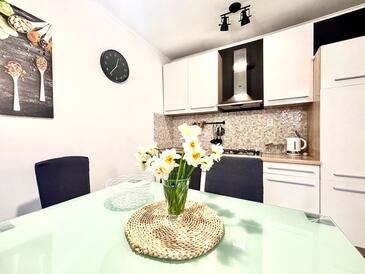 Appartamento può accogliere 5 ospiti. I letti sono disposti nelle camere da letto che sono 2, su 55m2. Gli ospiti hanno a disposizione il proprio terrazzo per godere nelle calde serate estive. Si può preparare il cibo utilizzando il barbecue comune.