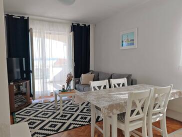 Appartamento può accogliere 5 ospiti. I letti sono disposti nelle camere da letto che sono 2, su 64m2. Gli ospiti hanno a disposizione il proprio terrazzo per godere nelle calde serate estive. Si può preparare il cibo utilizzando il barbecue comune.