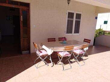 Appartamento può accogliere 7 ospiti. I letti sono disposti nelle camere da letto che sono 3, e nella sala da pranzo, su 75m2. Gli ospiti hanno a disposizione il proprio terrazzo per godere nelle calde serate estive. Dall'appartamento si gode di una vista sul mare. Si può preparare il cibo utilizzando il barbecue comune. Nell'unità di alloggio si possono portare gli animali domestici senza alcun pagamento supplementare.