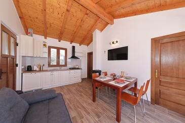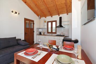 Casa può accogliere 4 ospiti. I letti sono disposti nelle camere da letto che sono 1, e nella camera di soggiorno, su 30m2. Gli ospiti hanno a disposizione il proprio terrazzo per godere nelle calde serate estive. Dalla casa si gode di una vista sul mare. Per il piacere totale e il relax c'è il barbecue privato solo per gli ospiti di quest'alloggio. Nell'unità di alloggio si possono portare gli animali domestici con un pagamento supplementare.
