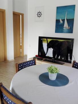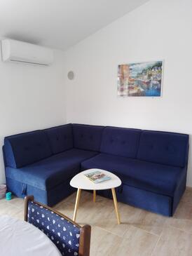 Appartamento può accogliere 5 ospiti. I letti sono disposti nelle camere da letto che sono 2, e nella camera di soggiorno, su 48m2. Gli ospiti hanno a disposizione il proprio terrazzo per godere nelle calde serate estive. Dall'appartamento si gode di una vista sul mare. Per il piacere totale e il relax c'è il barbecue privato solo per gli ospiti di quest'alloggio.