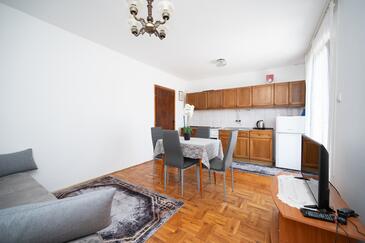 Appartamento può accogliere 5 ospiti. I letti sono disposti nelle camere da letto che sono 2, e nella camera di soggiorno, su 45m2. Gli ospiti hanno a disposizione il proprio terrazzo per godere nelle calde serate estive. Si può preparare il cibo utilizzando il barbecue comune.