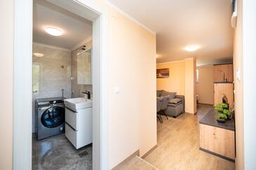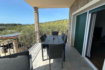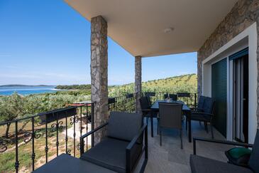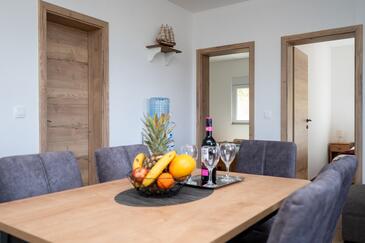 Casa può accogliere 8 ospiti. I letti sono disposti nelle camere da letto che sono 3, e nella camera di soggiorno e nella sala da pranzo, su 76m2. Gli ospiti hanno a disposizione il proprio terrazzo per godere nelle calde serate estive. Dalla casa si gode di una vista sul mare. Per il piacere totale e il relax c'è il barbecue privato solo per gli ospiti di quest'alloggio. Nell'unità di alloggio si possono portare gli animali domestici con un pagamento supplementare. Le stanze dell'unità d'alloggio non sono connesse in un insieme.