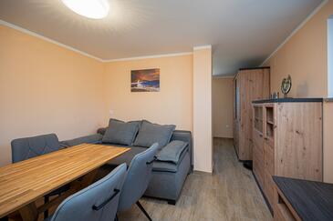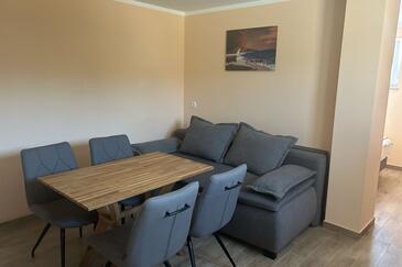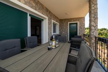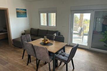 Casa può accogliere 8 ospiti. I letti sono disposti nelle camere da letto che sono 3, e nella camera di soggiorno e nella sala da pranzo, su 76m2. Gli ospiti hanno a disposizione il proprio terrazzo per godere nelle calde serate estive. Dalla casa si gode di una vista sul mare. Per il piacere totale e il relax c'è il barbecue privato solo per gli ospiti di quest'alloggio. Nell'unità di alloggio si possono portare gli animali domestici con un pagamento supplementare. Le stanze dell'unità d'alloggio non sono connesse in un insieme.