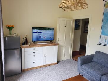 Appartamento può accogliere 8 ospiti. I letti sono disposti nelle camere da letto che sono 4, su 117m2. Gli ospiti hanno a disposizione il proprio terrazzo per godere nelle calde serate estive. Dall'appartamento si gode di una vista sul mare. Si può preparare il cibo utilizzando il barbecue comune. Le stanze dell'unità d'alloggio non sono connesse in un insieme. L'unità d'alloggio ha delle stanze separate dal resto dell'unità.