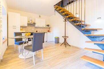 Casa può accogliere 3 ospiti. I letti sono disposti nelle camere da letto che sono 1, e nella camera di soggiorno, su 58m2. Gli ospiti hanno a disposizione il proprio terrazzo per godere nelle calde serate estive. Per il piacere totale e il relax c'è il barbecue privato solo per gli ospiti di quest'alloggio. Nell'unità di alloggio si possono portare gli animali domestici senza alcun pagamento supplementare.