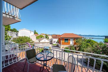 Appartamento può accogliere 5 ospiti. I letti sono disposti nelle camere da letto che sono 2, su 41m2. Gli ospiti hanno a disposizione il proprio balcone per godere delle calde serate estive. Dall'appartamento si gode di una vista sul mare.