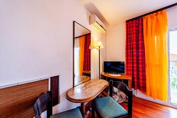Appartamento può accogliere 5 ospiti. I letti sono disposti nelle camere da letto che sono 2, su 41m2. Gli ospiti hanno a disposizione il proprio balcone per godere delle calde serate estive. Dall'appartamento si gode di una vista sul mare.