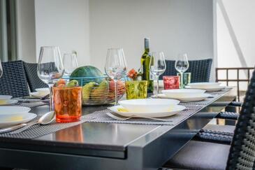 Appartamento può accogliere 6 ospiti. I letti sono disposti nelle camere da letto che sono 3, su 81m2. Gli ospiti hanno a disposizione il proprio terrazzo per godere nelle calde serate estive.
