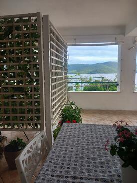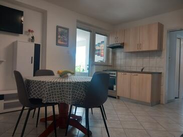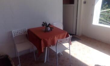 Appartamento può accogliere 5 ospiti. I letti sono disposti nelle camere da letto che sono 2, su 45m2. Gli ospiti hanno a disposizione il proprio terrazzo per godere nelle calde serate estive. Dall'appartamento si gode di una vista sul mare. Si può preparare il cibo utilizzando il barbecue comune.