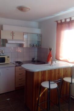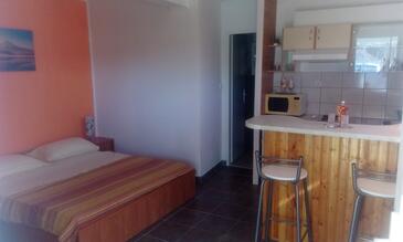 Appartamento può accogliere 5 ospiti. I letti sono disposti nelle camere da letto che sono 2, su 45m2. Gli ospiti hanno a disposizione il proprio terrazzo per godere nelle calde serate estive. Dall'appartamento si gode di una vista sul mare. Si può preparare il cibo utilizzando il barbecue comune.