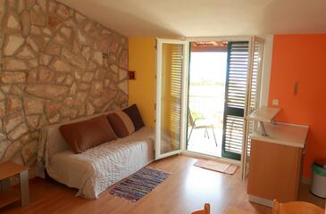 Appartamento può accogliere 2 ospiti. I letti sono disposti nelle camere da letto che sono 1, su 30m2. Gli ospiti hanno a disposizione il proprio terrazzo per godere nelle calde serate estive. Dall'appartamento si gode di una vista sul mare. Si può preparare il cibo utilizzando il barbecue comune.
