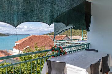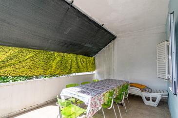 Appartamento può accogliere 6 ospiti. I letti sono disposti nelle camere da letto che sono 2, su 61m2. Gli ospiti hanno a disposizione il proprio terrazzo per godere nelle calde serate estive. Si può preparare il cibo utilizzando il barbecue comune. Nell'unità di alloggio si possono portare gli animali domestici con un pagamento supplementare.