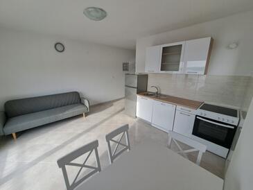 Appartamento può accogliere 6 ospiti. I letti sono disposti nelle camere da letto che sono 2, e nella sala da pranzo, su 50m2. Gli ospiti hanno a disposizione il proprio terrazzo per godere nelle calde serate estive. Dall'appartamento si gode di una vista sul mare. Si può preparare il cibo utilizzando il barbecue comune. L'unità d'alloggio ha delle stanze separate dal resto dell'unità.