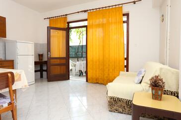 Appartamento può accogliere 6 ospiti. I letti sono disposti nelle camere da letto che sono 2, e nella sala da pranzo, su 50m2. Gli ospiti hanno a disposizione il proprio terrazzo per godere nelle calde serate estive. Dall'appartamento si gode di una vista sul mare. Si può preparare il cibo utilizzando il barbecue comune. L'unità d'alloggio ha delle stanze separate dal resto dell'unità.