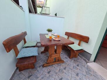 Monolocale può accogliere 4 ospiti. I letti sono disposti nelle camere da letto che sono 1, e nella sala da pranzo, su 27m2. Gli ospiti hanno a disposizione il proprio terrazzo per godere nelle calde serate estive. Si può preparare il cibo utilizzando il barbecue comune. Nell'unità di alloggio si possono portare gli animali domestici con un pagamento supplementare.