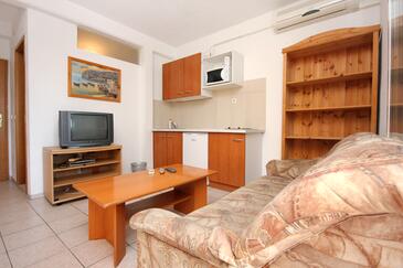Appartamento può accogliere 5 ospiti. I letti sono disposti nelle camere da letto che sono 2, e nella camera di soggiorno, su 38m2. Gli ospiti hanno a disposizione il proprio terrazzo per godere nelle calde serate estive. Dall'appartamento si gode di una vista sul mare. Si può preparare il cibo utilizzando il barbecue comune. Durante il soggiorno gli ospiti possono utilizzare la piscina comune.