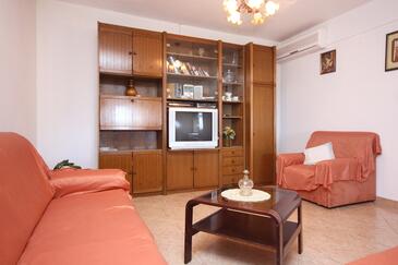 Appartamento può accogliere 6 ospiti. I letti sono disposti nelle camere da letto che sono 3, su 91m2. Gli ospiti hanno a disposizione il proprio terrazzo per godere nelle calde serate estive. Si può preparare il cibo utilizzando il barbecue comune.