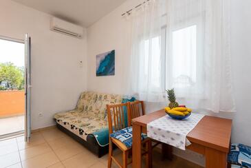 Appartamento può accogliere 3 ospiti. I letti sono disposti nelle camere da letto che sono 1, e nella camera di soggiorno, su 30m2. Gli ospiti hanno a disposizione il proprio terrazzo per godere nelle calde serate estive. Dall'appartamento si gode di una vista sul mare.