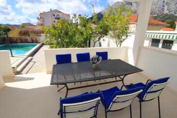 Appartamento può accogliere 4 ospiti. I letti sono disposti nelle camere da letto che sono 2, su 52m2. Gli ospiti hanno a disposizione il proprio terrazzo per godere nelle calde serate estive. Si può preparare il cibo utilizzando il barbecue comune. Durante il soggiorno gli ospiti possono utilizzare la piscina comune. Nell'unità di alloggio si possono portare gli animali domestici con un pagamento supplementare.