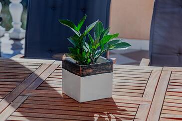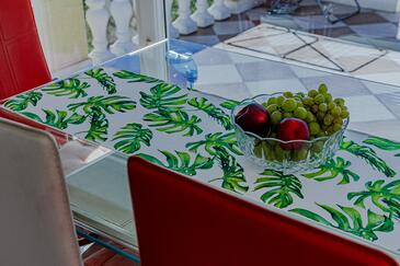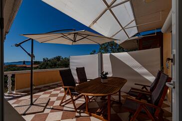 Appartamento può accogliere 4 ospiti. I letti sono disposti nelle camere da letto che sono 2, su 58m2. Gli ospiti hanno a disposizione il proprio terrazzo per godere nelle calde serate estive. Dall'appartamento si gode di una vista sul mare. Si può preparare il cibo utilizzando il barbecue comune.