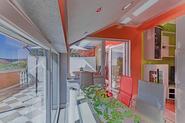 Appartamento può accogliere 4 ospiti. I letti sono disposti nelle camere da letto che sono 2, su 58m2. Gli ospiti hanno a disposizione il proprio terrazzo per godere nelle calde serate estive. Dall'appartamento si gode di una vista sul mare. Si può preparare il cibo utilizzando il barbecue comune.