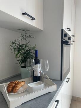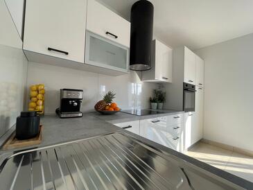 Appartamento può accogliere 6 ospiti. I letti sono disposti nelle camere da letto che sono 3, su 83m2. Gli ospiti hanno a disposizione il proprio terrazzo per godere nelle calde serate estive. Dall'appartamento si gode di una vista sul mare.