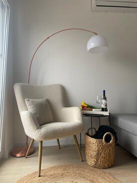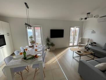 Appartamento può accogliere 6 ospiti. I letti sono disposti nelle camere da letto che sono 3, su 83m2. Gli ospiti hanno a disposizione il proprio terrazzo per godere nelle calde serate estive. Dall'appartamento si gode di una vista sul mare.