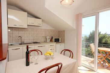 Appartamento può accogliere 4 ospiti. I letti sono disposti nelle camere da letto che sono 2, su 43m2. Gli ospiti hanno a disposizione il proprio balcone per godere delle calde serate estive. Dall'appartamento si gode di una vista sul mare. Si può preparare il cibo utilizzando il barbecue comune.