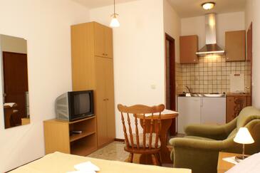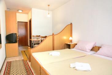 Monolocale può accogliere 2 ospiti. I letti sono disposti nelle camere da letto che sono 1, su 20m2. Gli ospiti hanno a disposizione il proprio balcone per godere delle calde serate estive. Si può preparare il cibo utilizzando il barbecue comune.